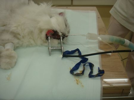 が、今回はするするっとひっかることなく、カンシにつままれたリボンが口から出てきました。スタッフ一同大喜び。開腹手術することなく摘出できたことは非常にラッキーな事例です。神様からのお年玉でしょうか